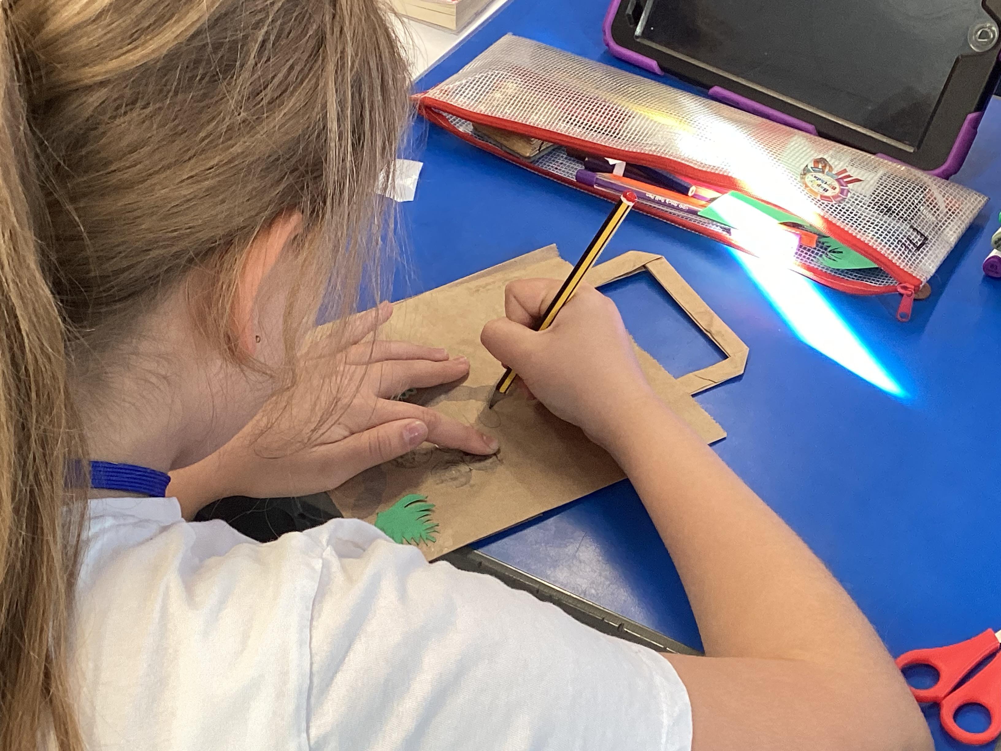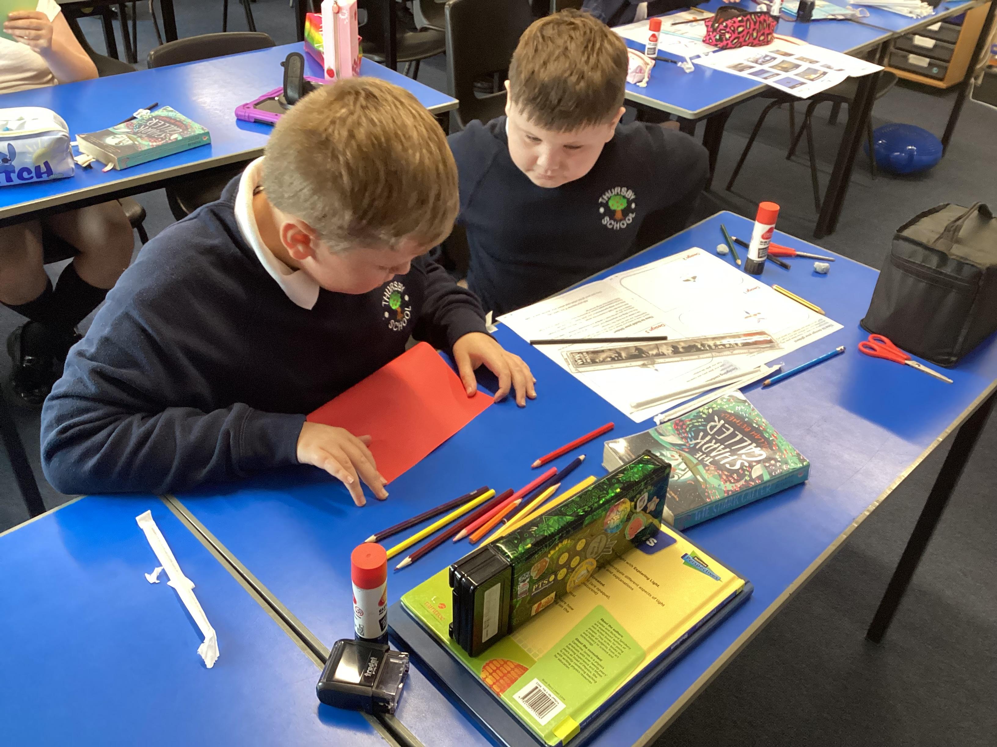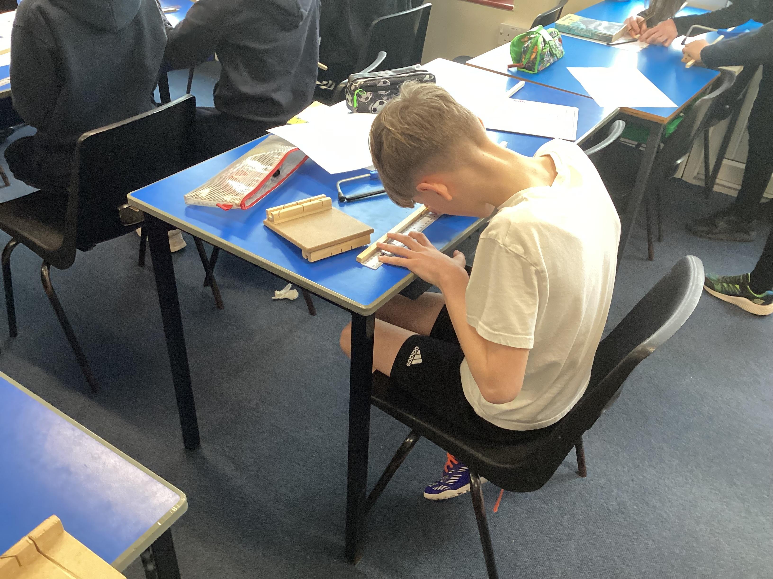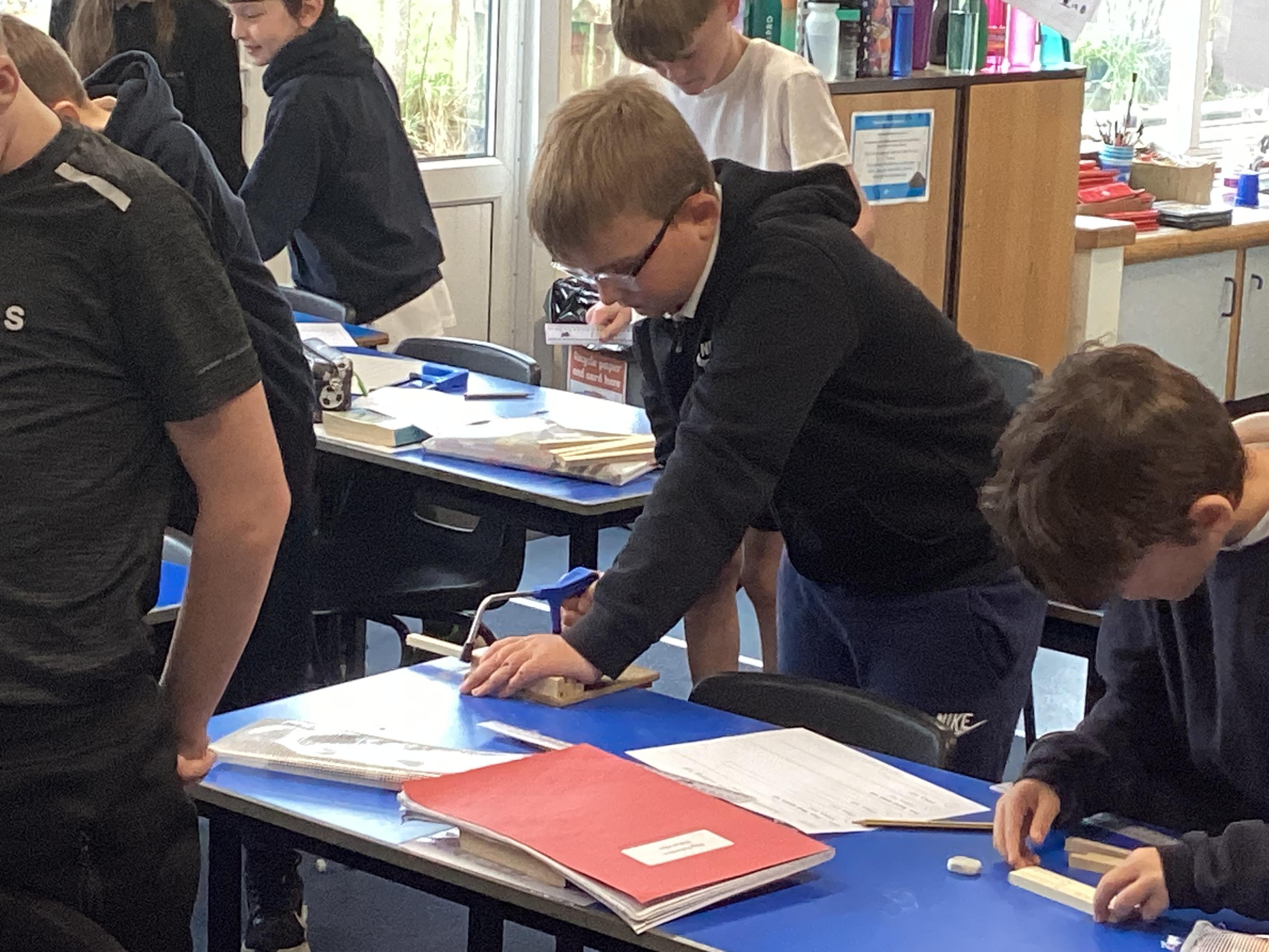In D&T, Class 4 are designing and making their own 'automata toy'. Here we are measuring and cutting pieces of wood before we assemble the frame.