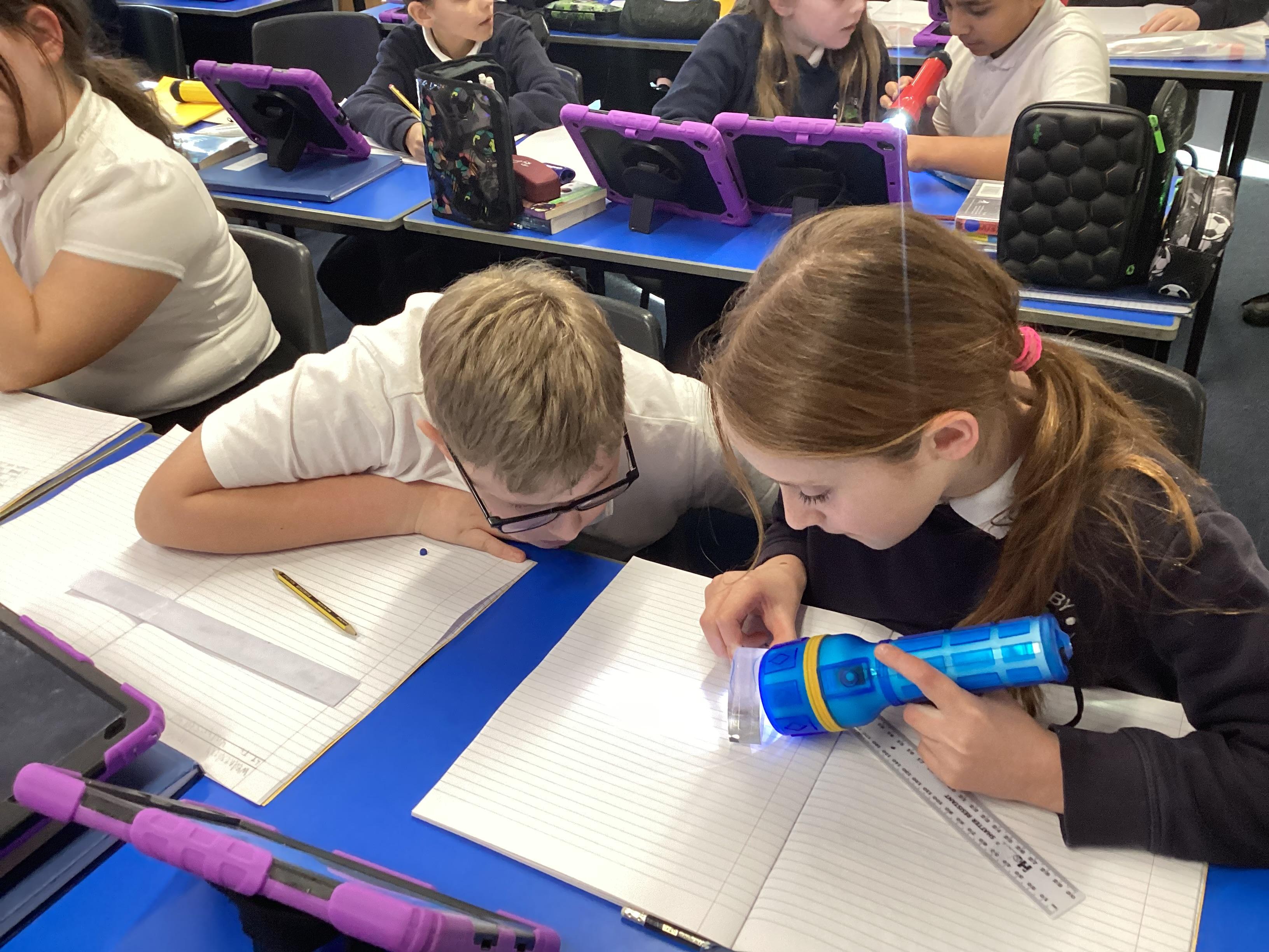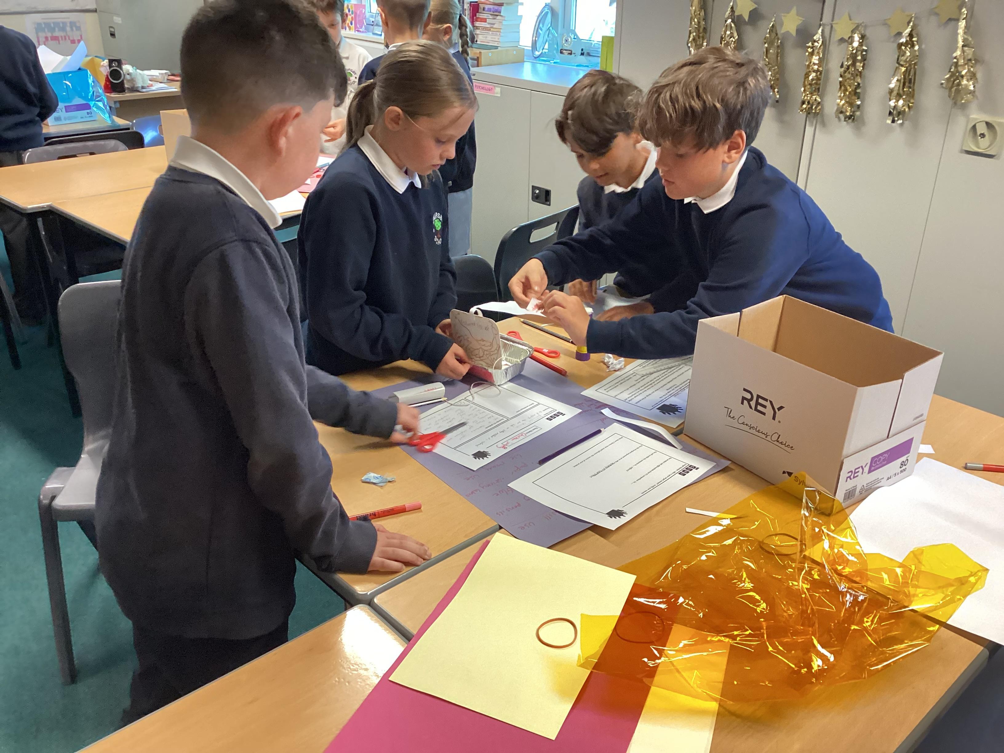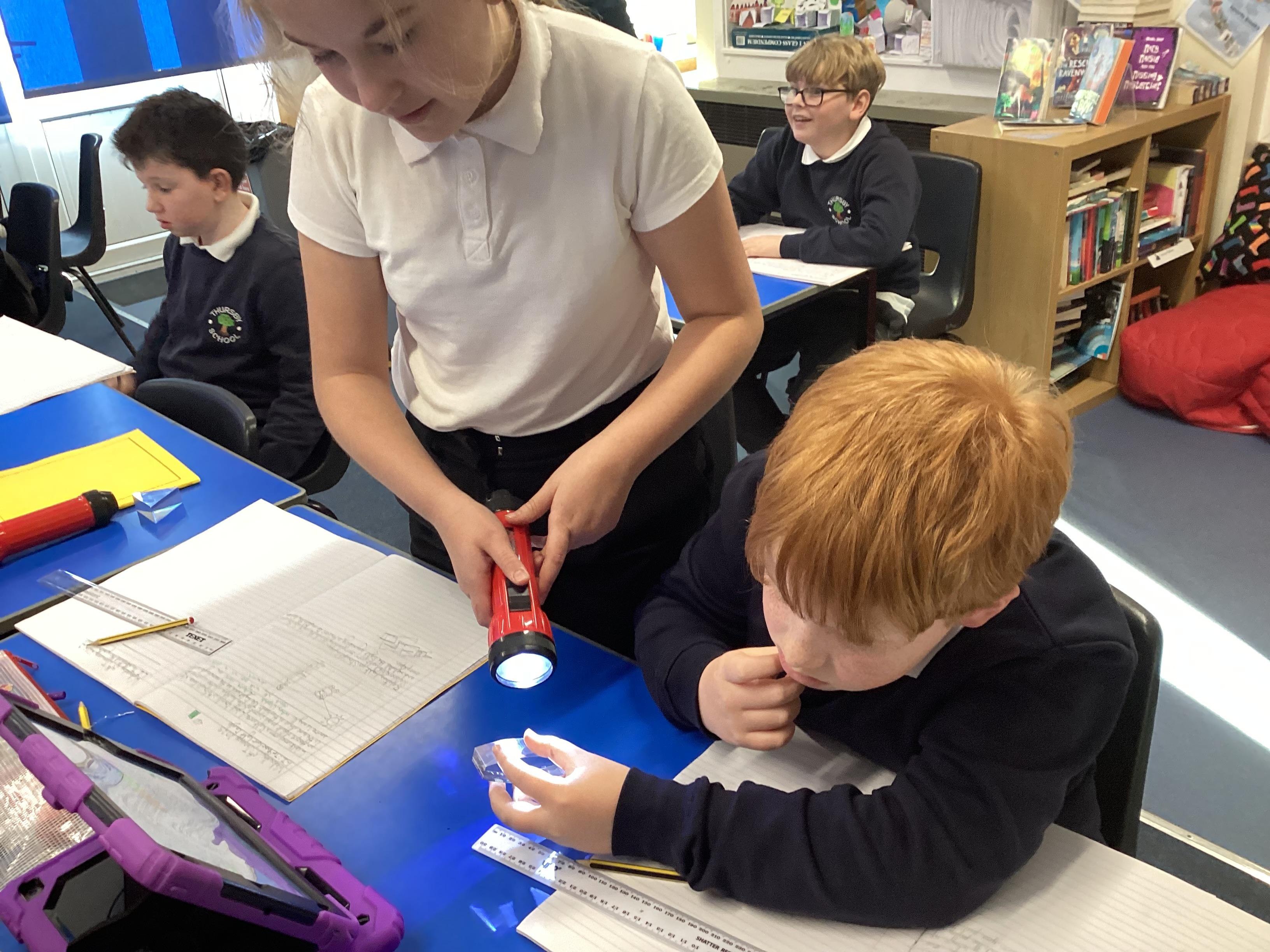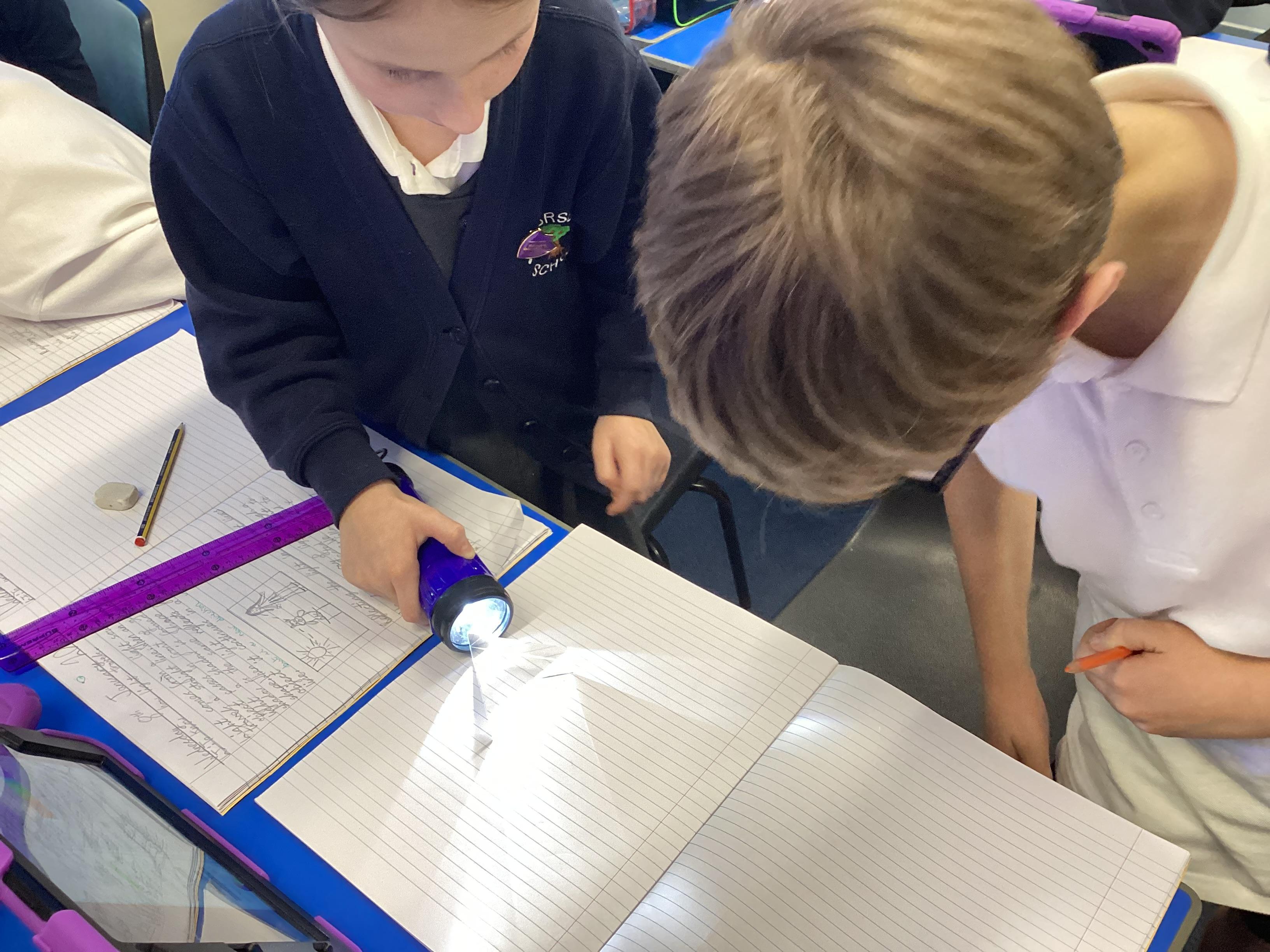Class 4 working on our Science topic of Light. We looked at how light refracts after travelling through a prism, the colour spectrum and how rainbows are formed.