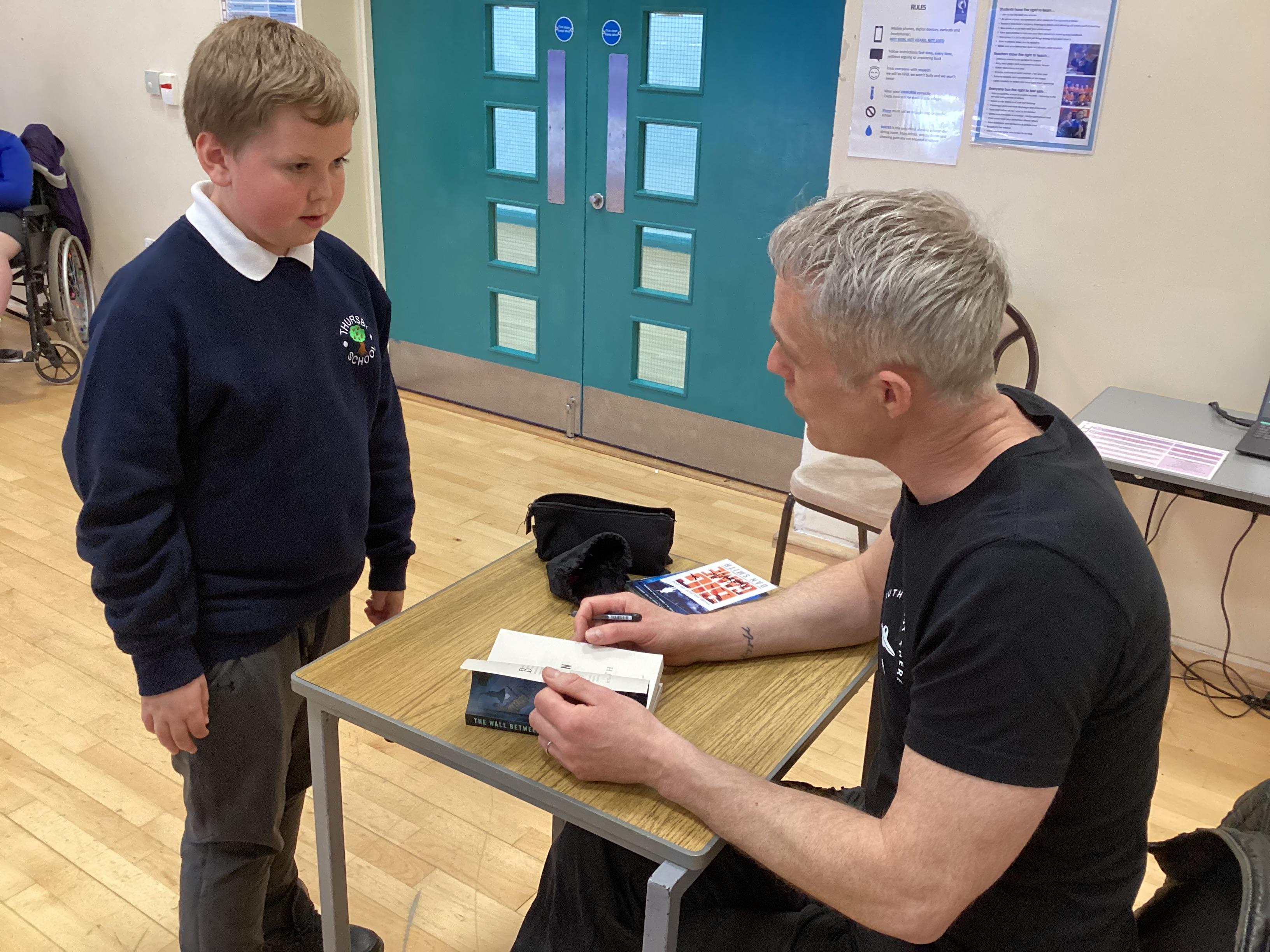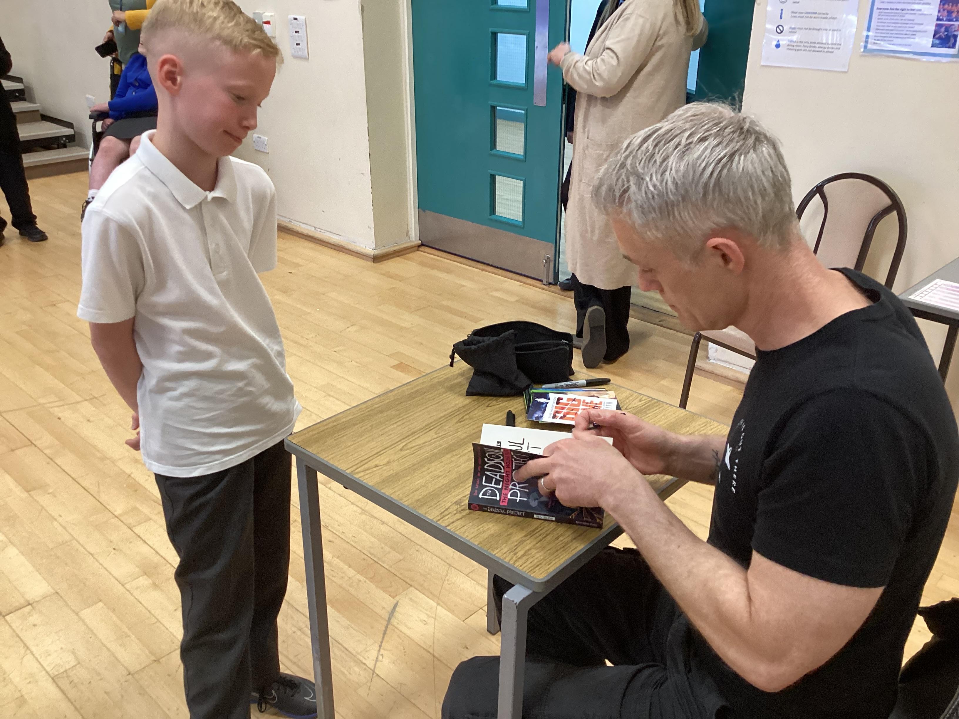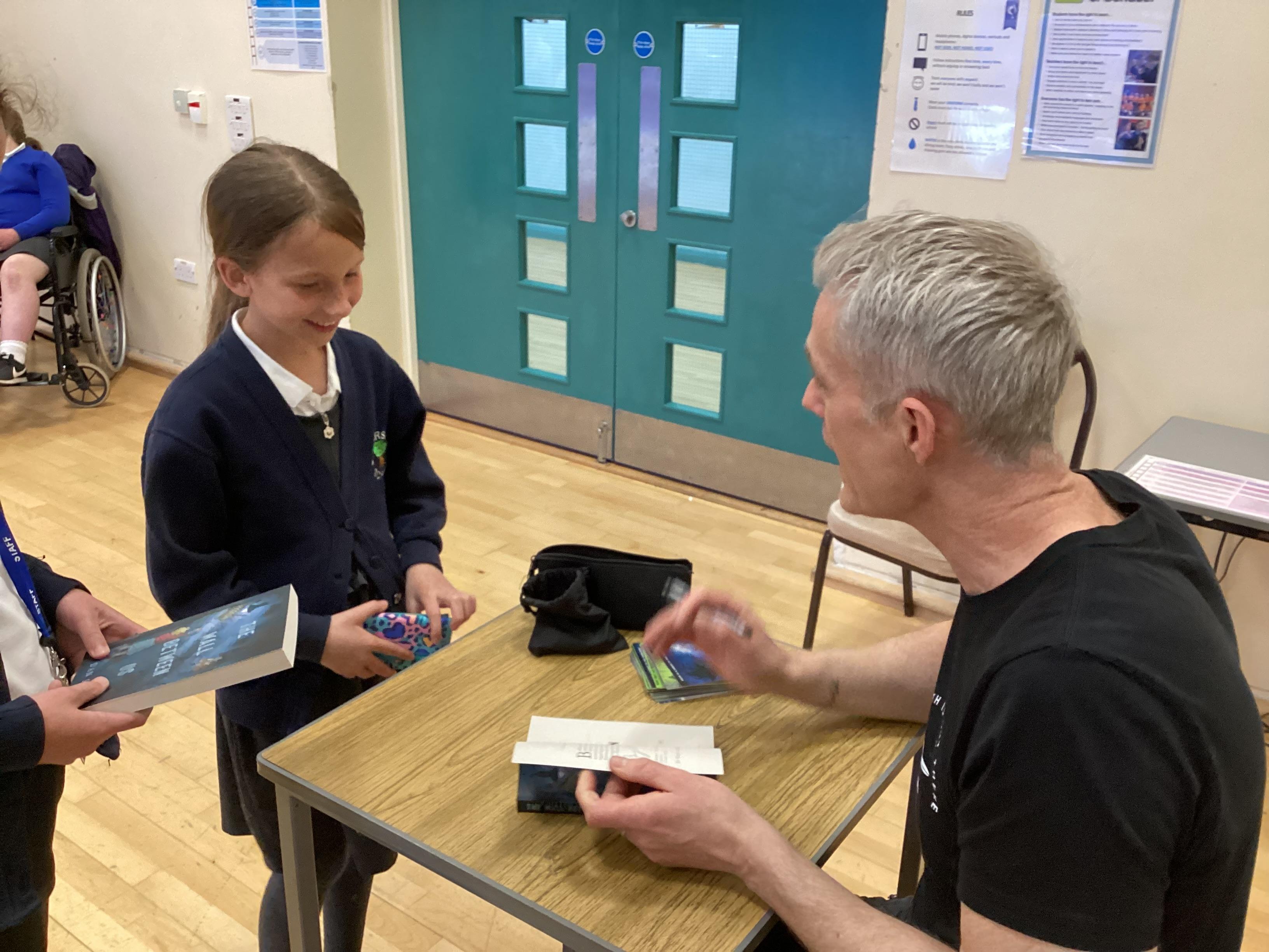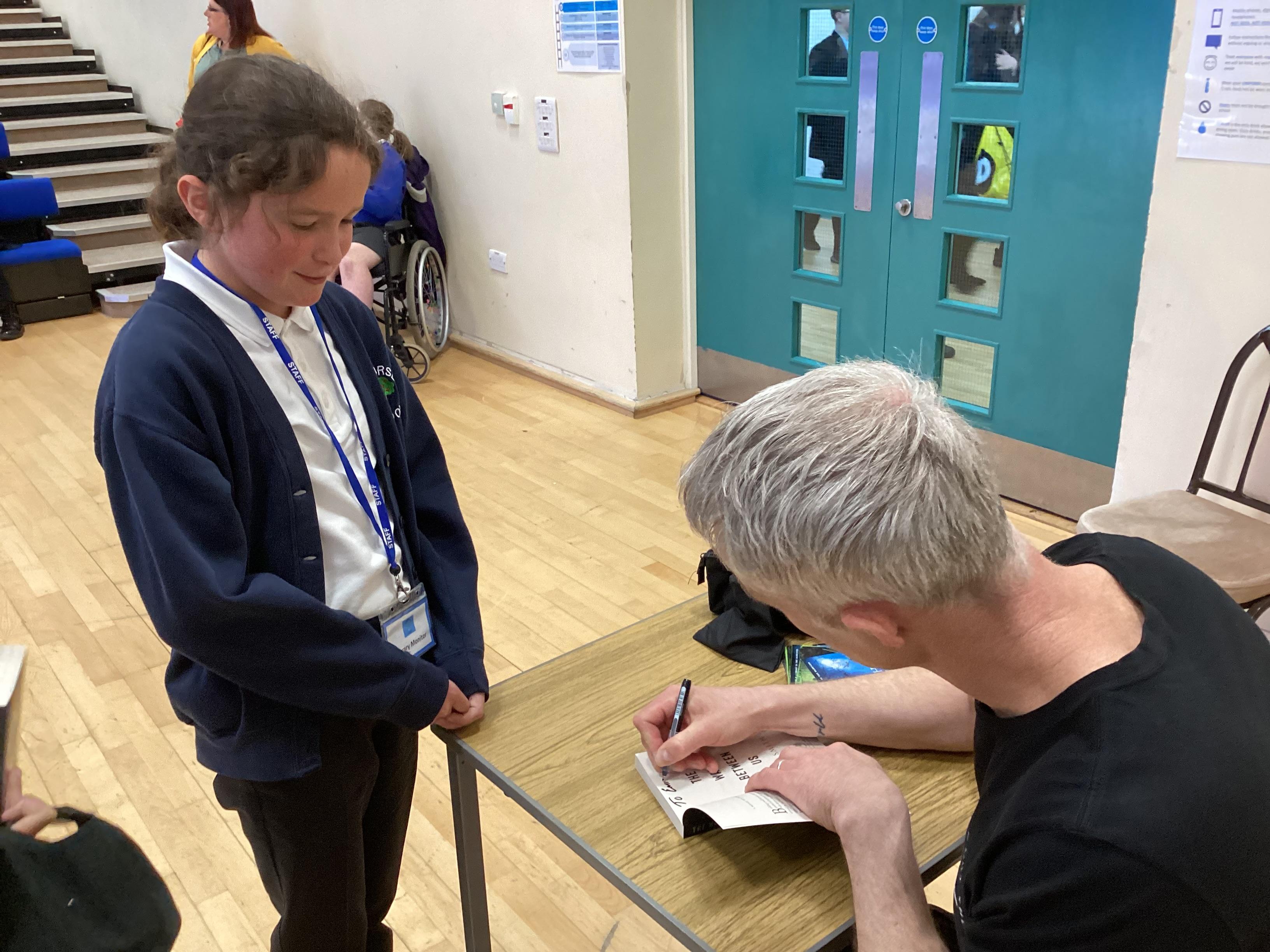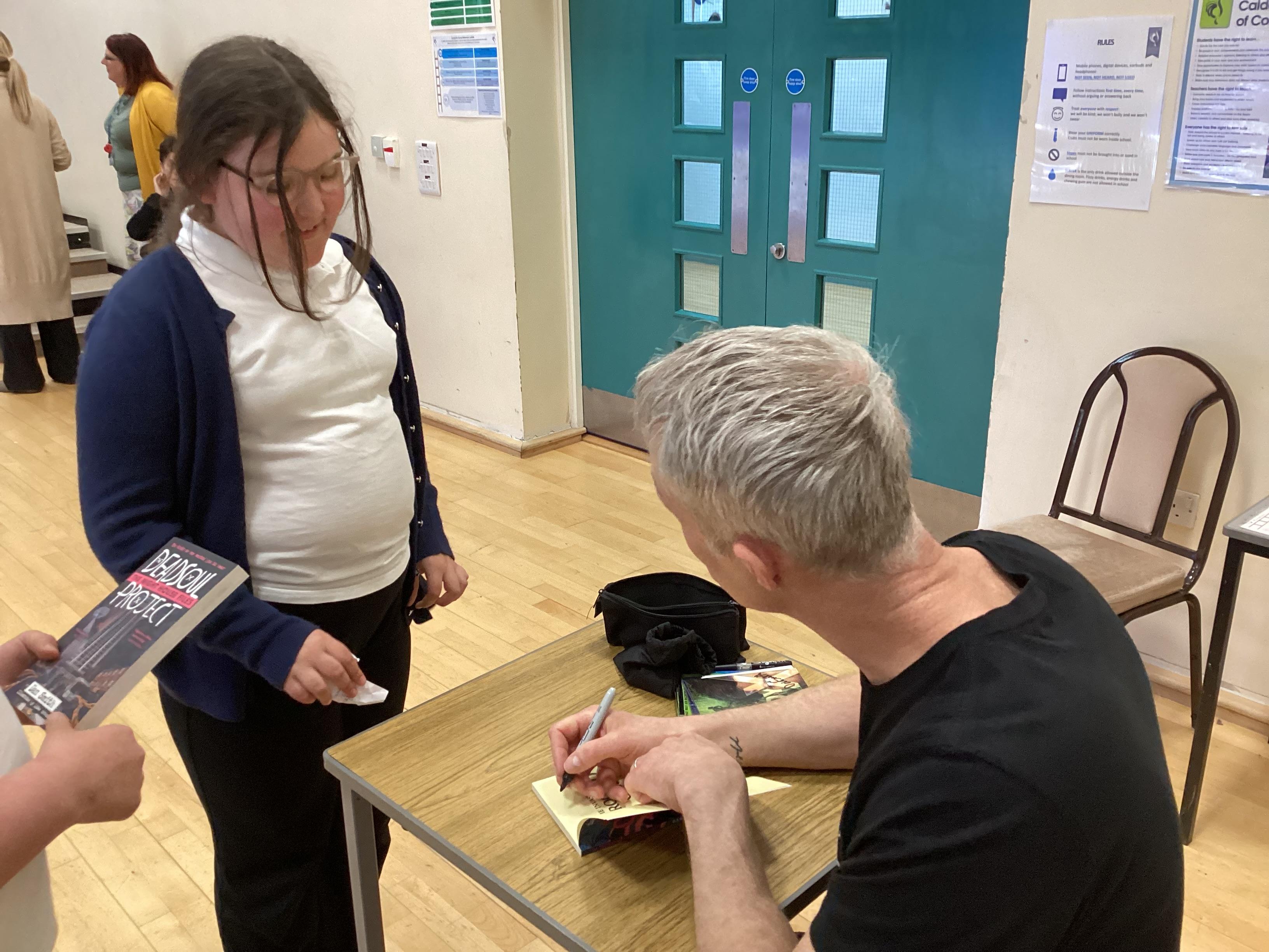 We visited Caldew Secondary School for an author workshop. Dan Smith, the adult and children’s writer, spoke to us about how he became an author and where his inspiration for his books came from. The children then had the opportunity to get a signed copy of one of his books.