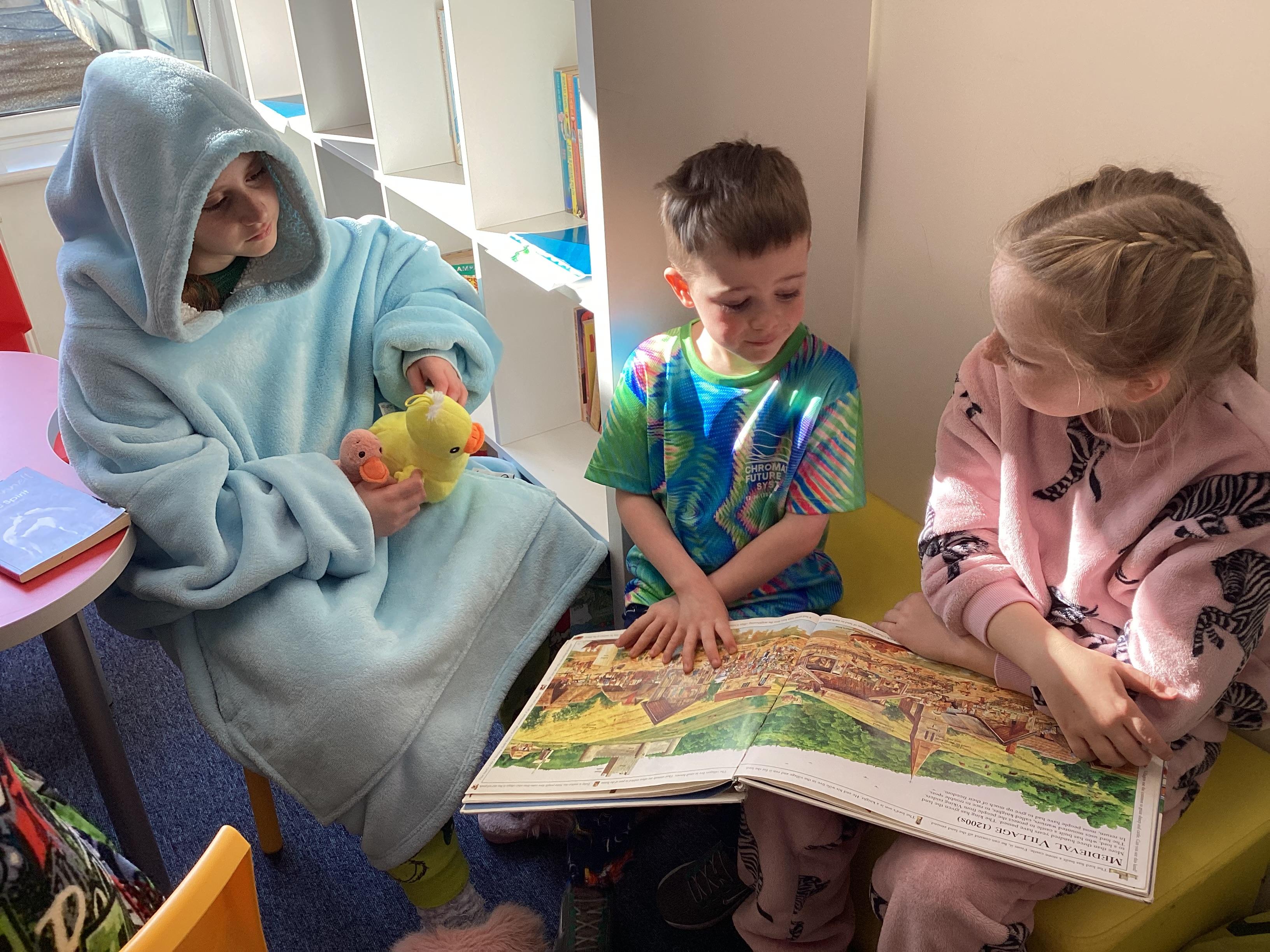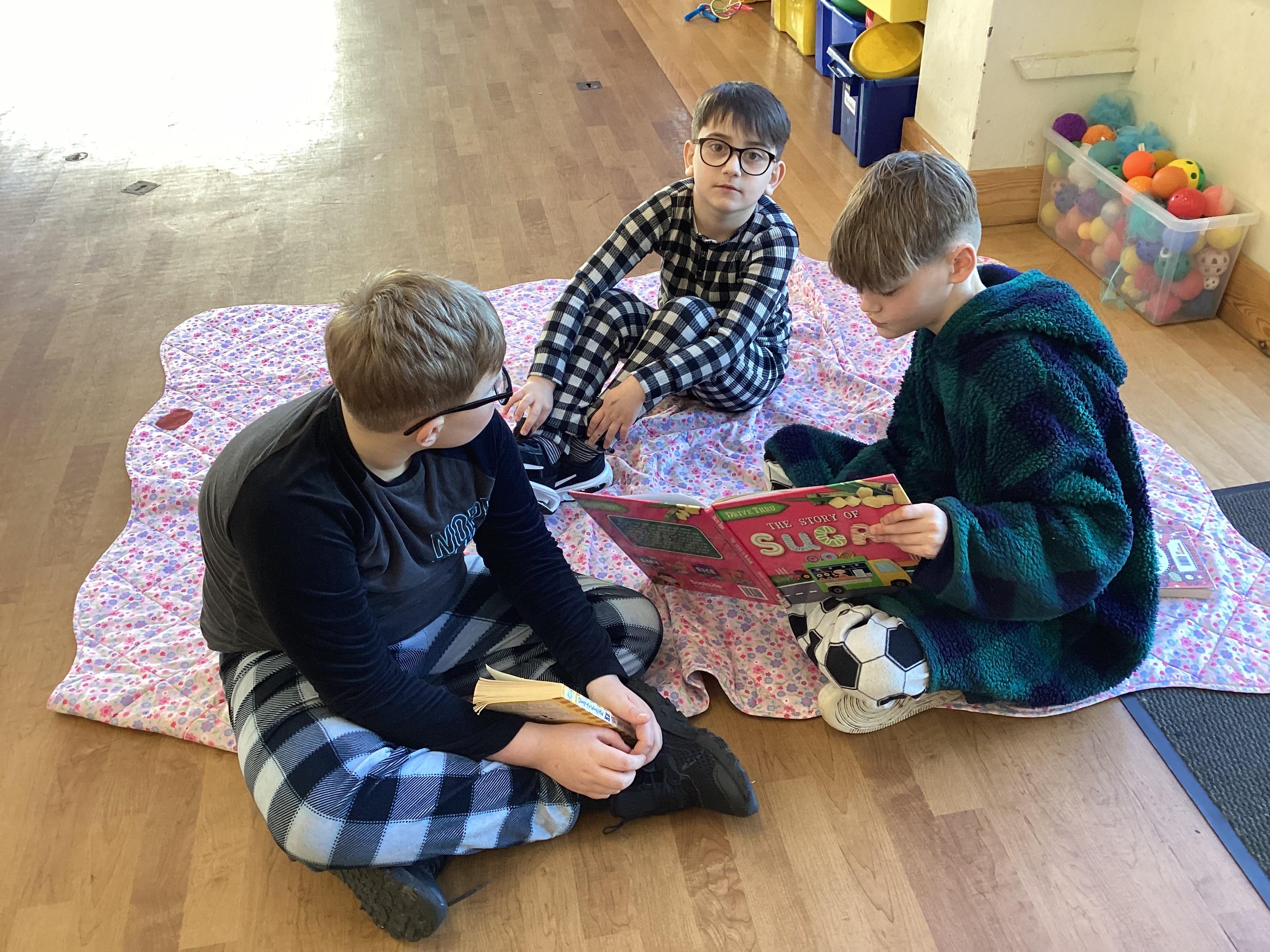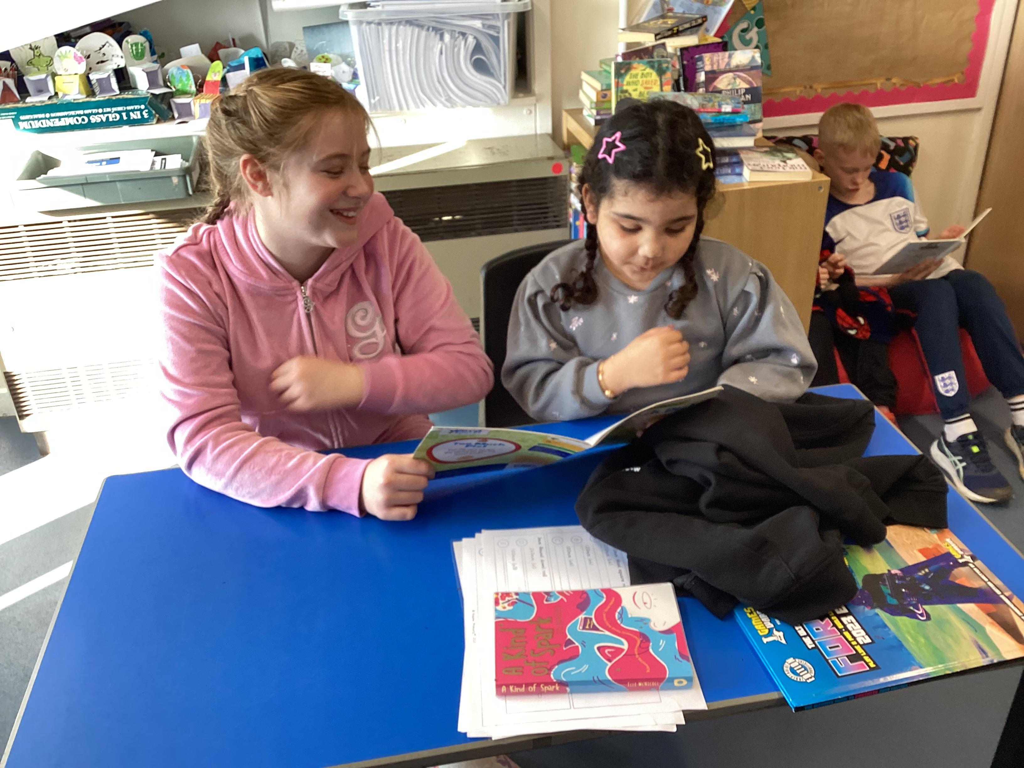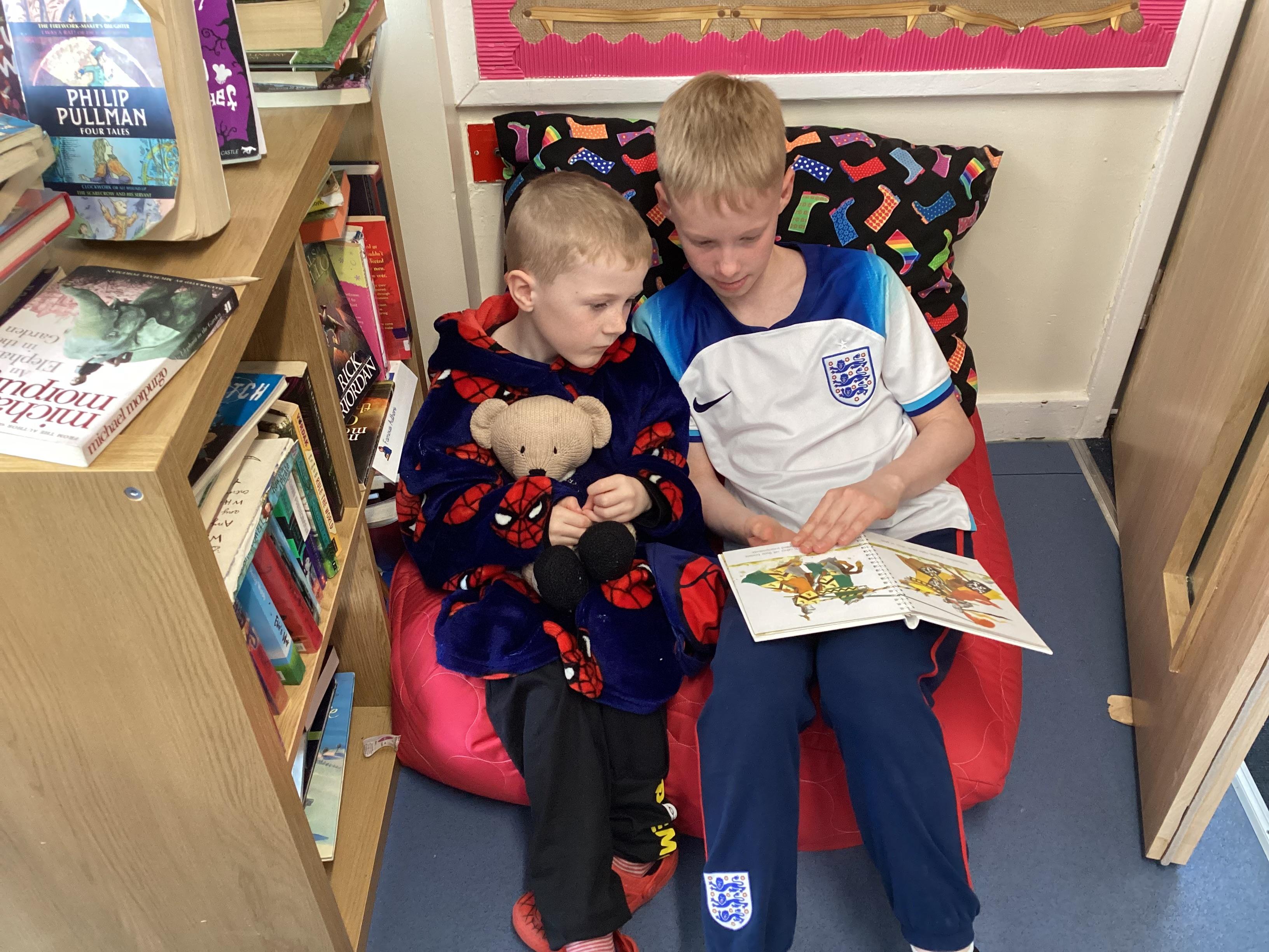 World Book Day - here are Class 4 with Class 2 doing some paired reading. It was great to spend time together.