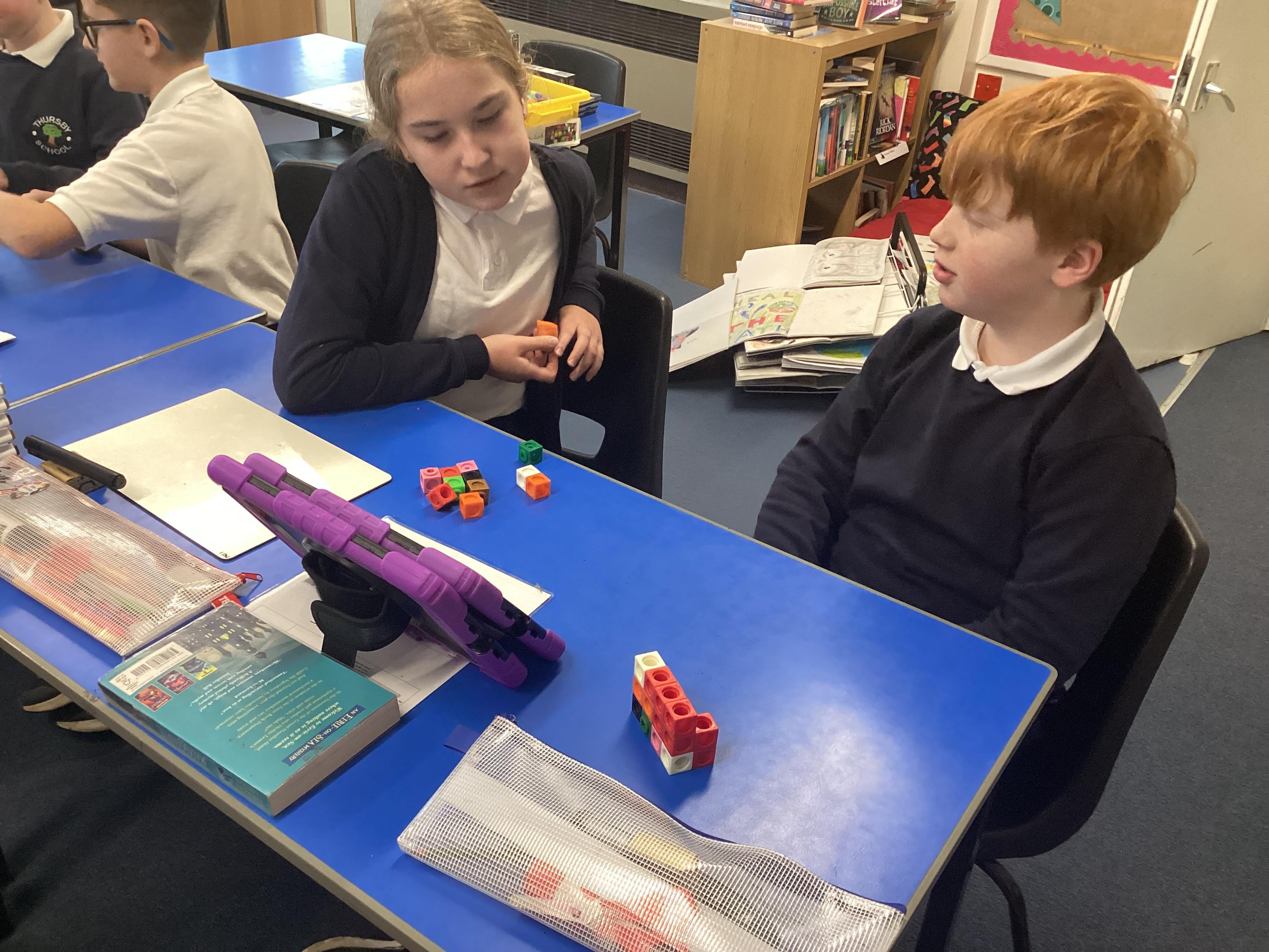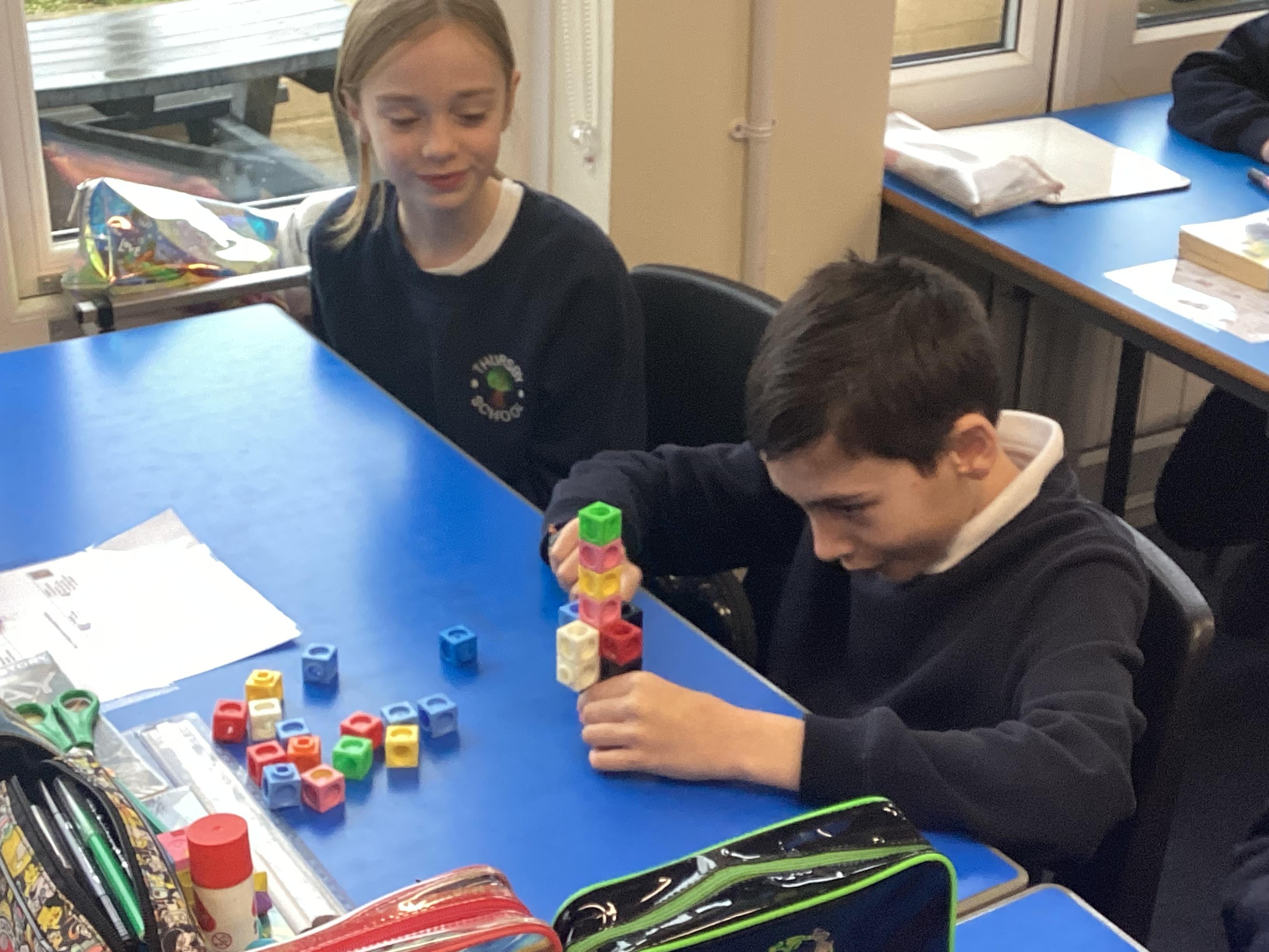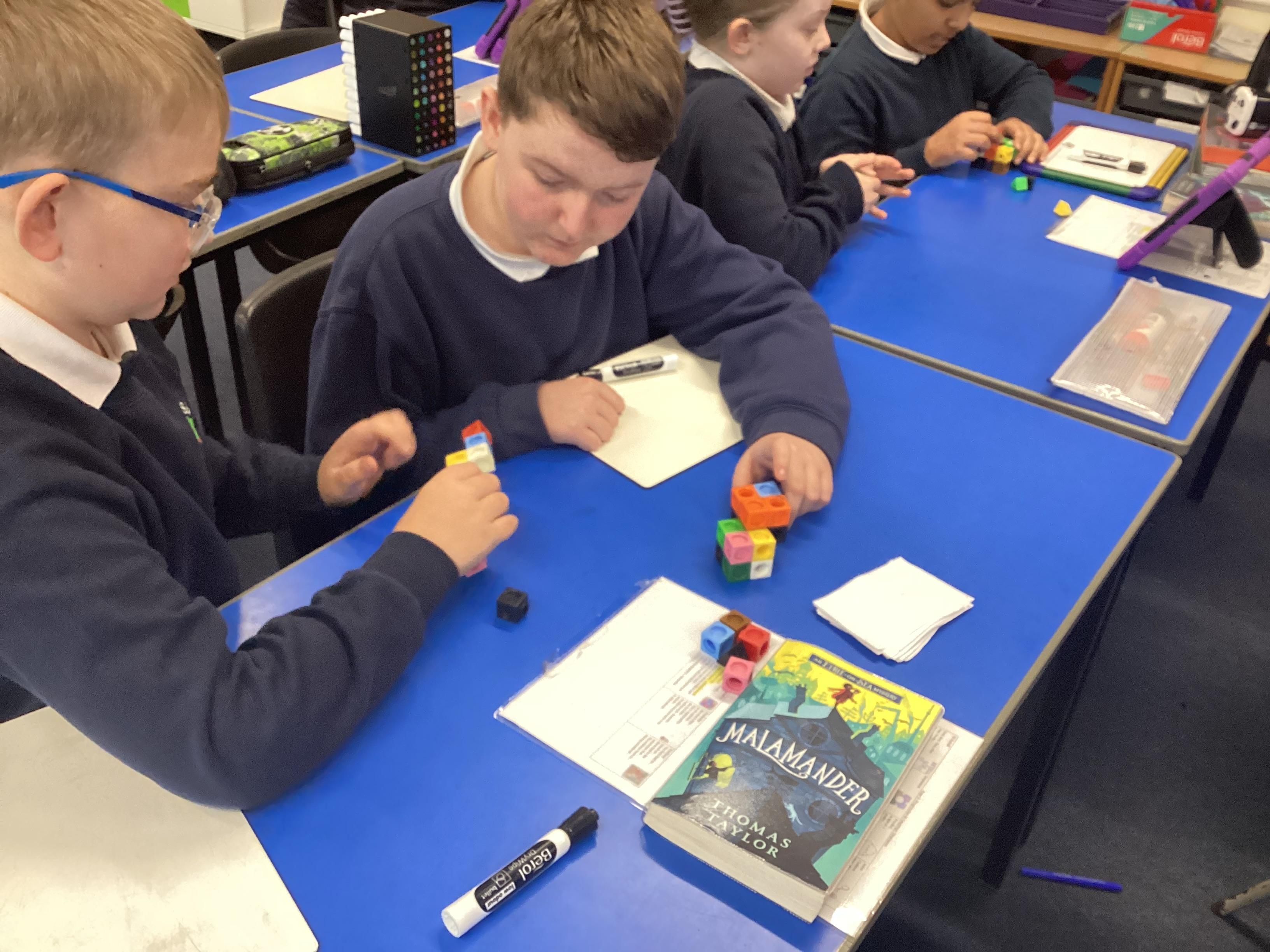 In this Maths lesson, we were learning about volume using cubes to create shapes and then working out the total volume.