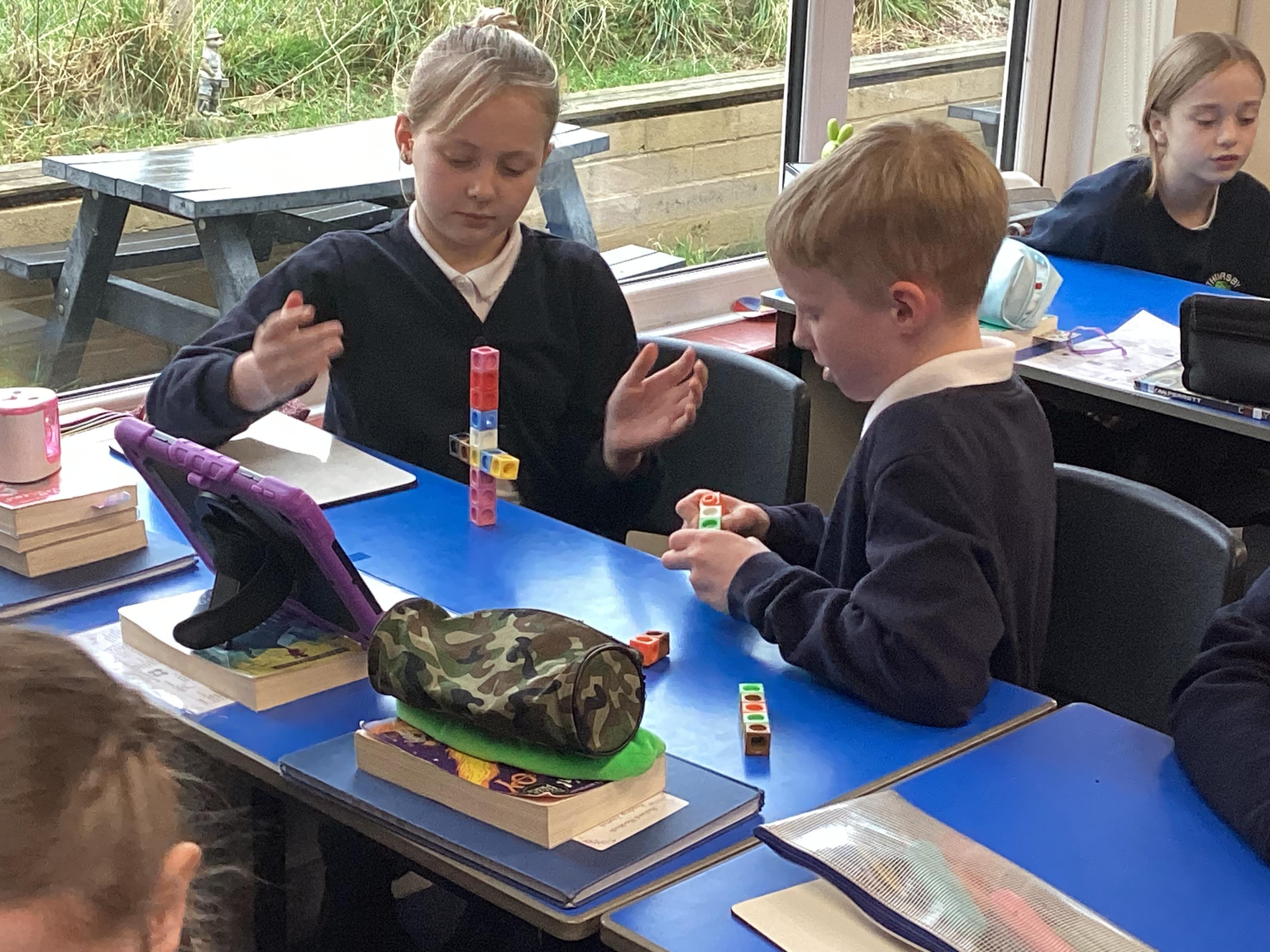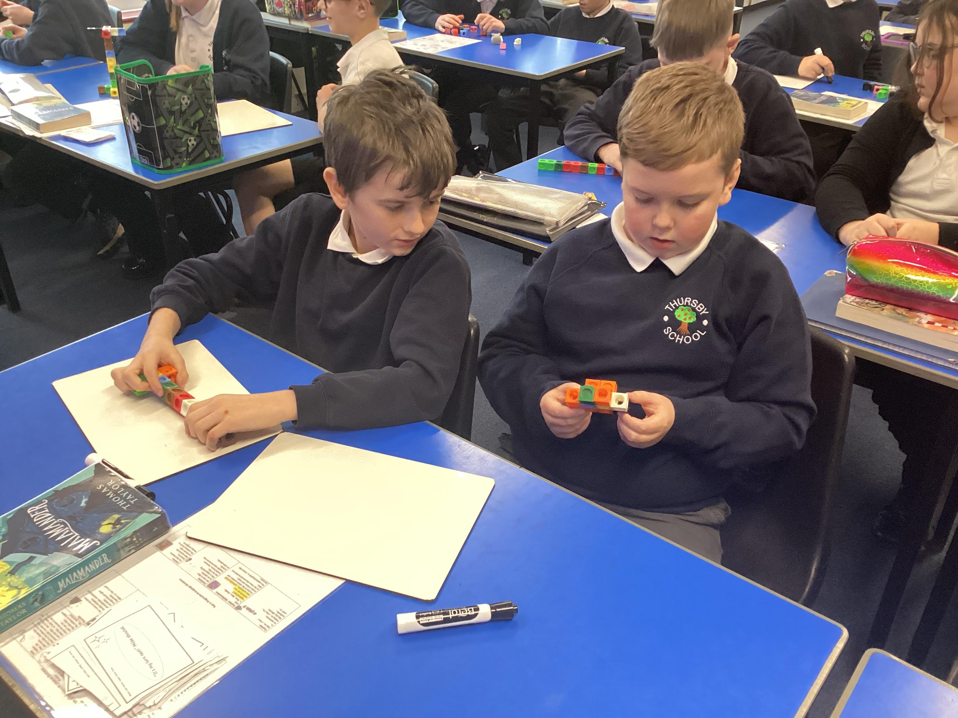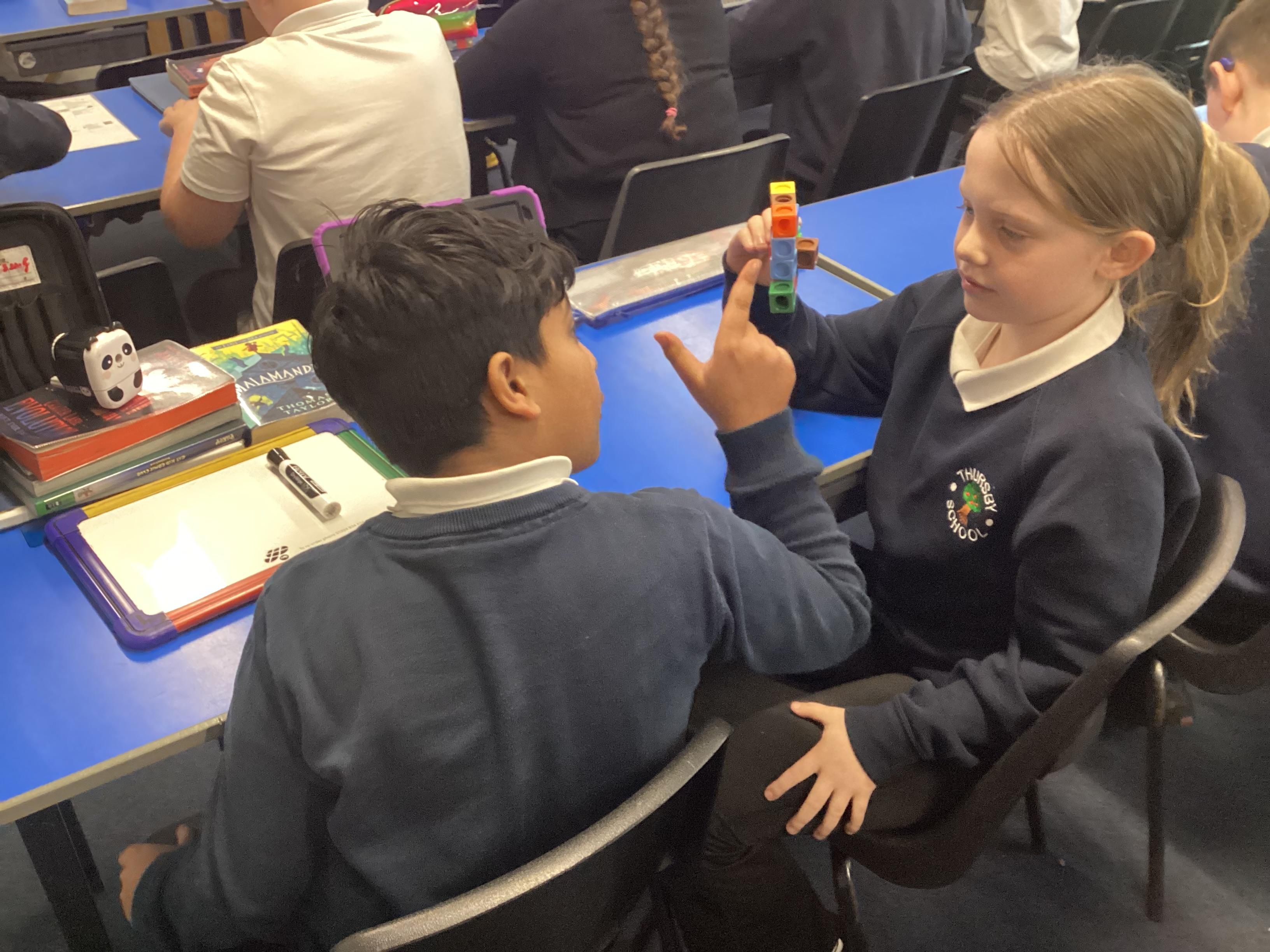 In this Maths lesson, we were learning about volume using cubes to create shapes and then working out the total volume.